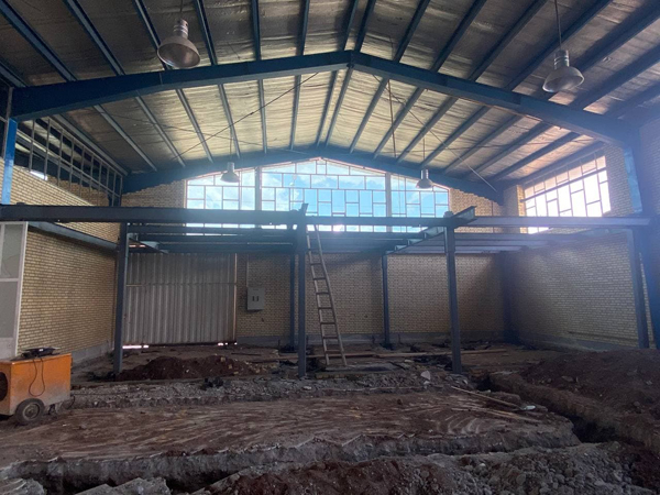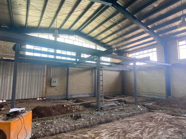 مراحل ساخت ۴ سازه اداری و رستوران، هواساز و فنی در ابتدا و انتهای دو‌ دهنه سوله