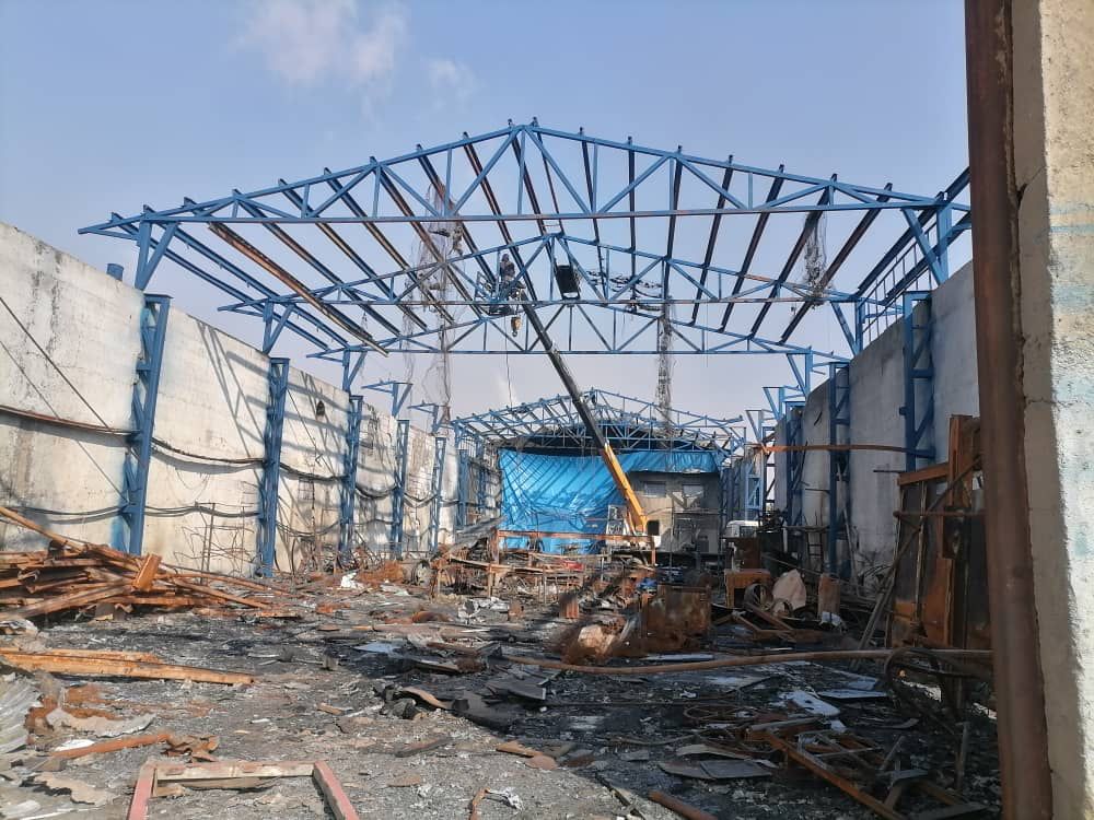 بازسازی و اصلاح سوله سوخته در شهر آبیک توسط شرک نارنجی سازه