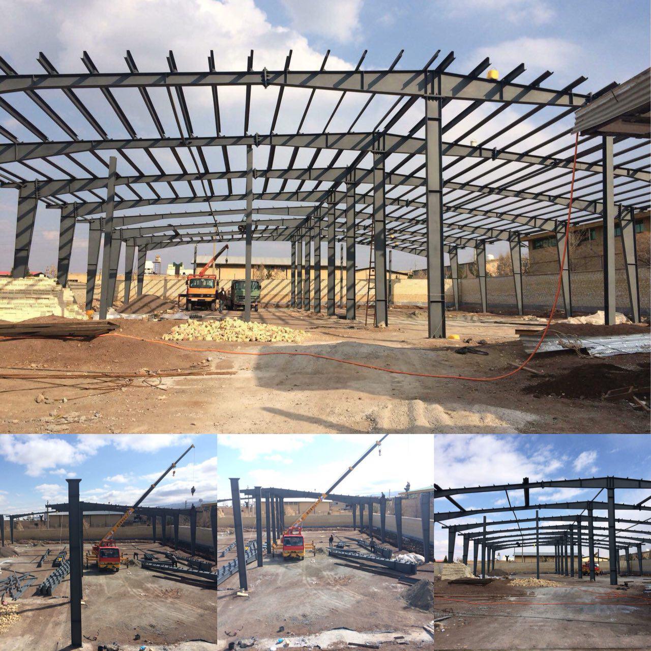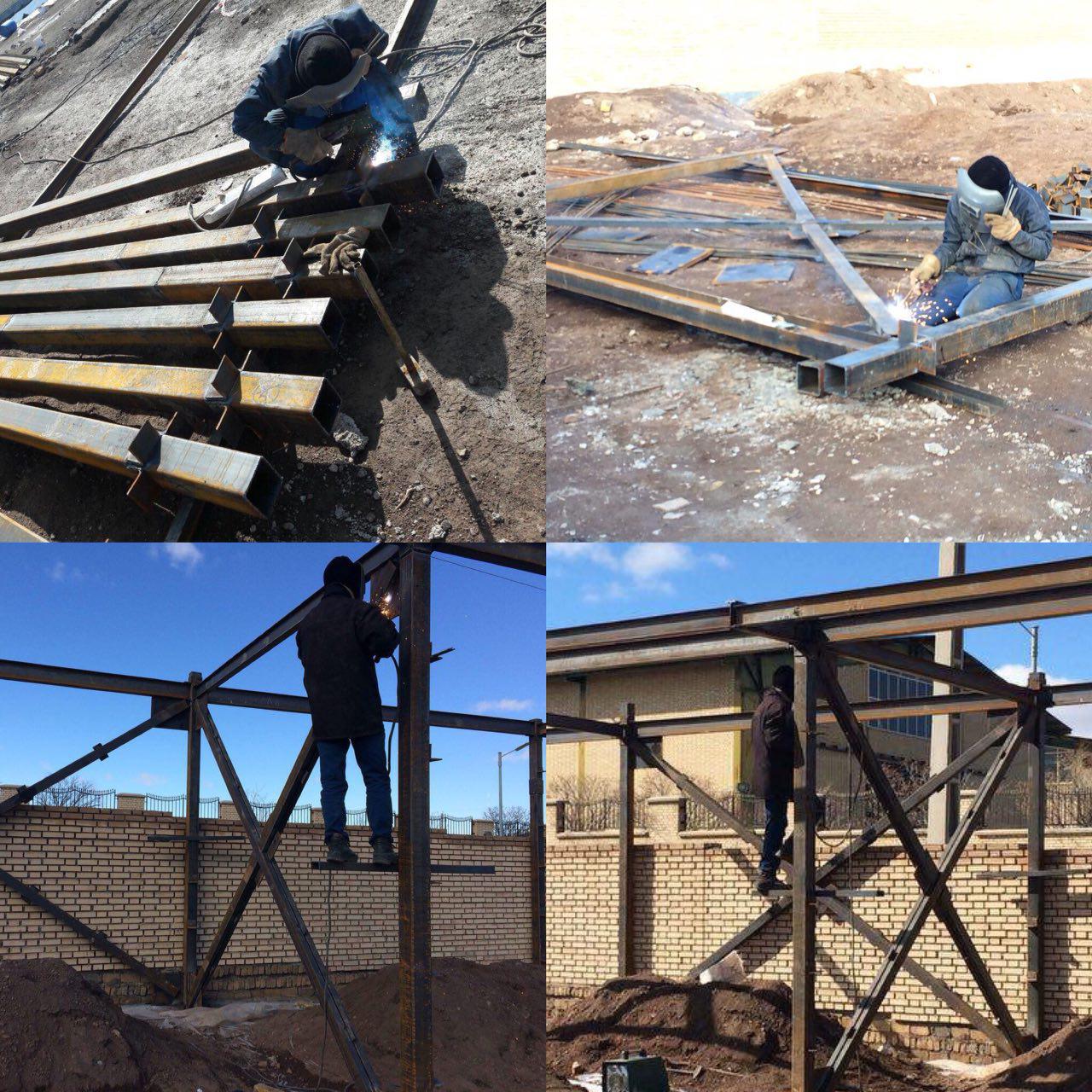 - مراحل کار گذاشتن ستون های اسکلت فلزی شرکت سلامت کاران یادمان در اشتهارد